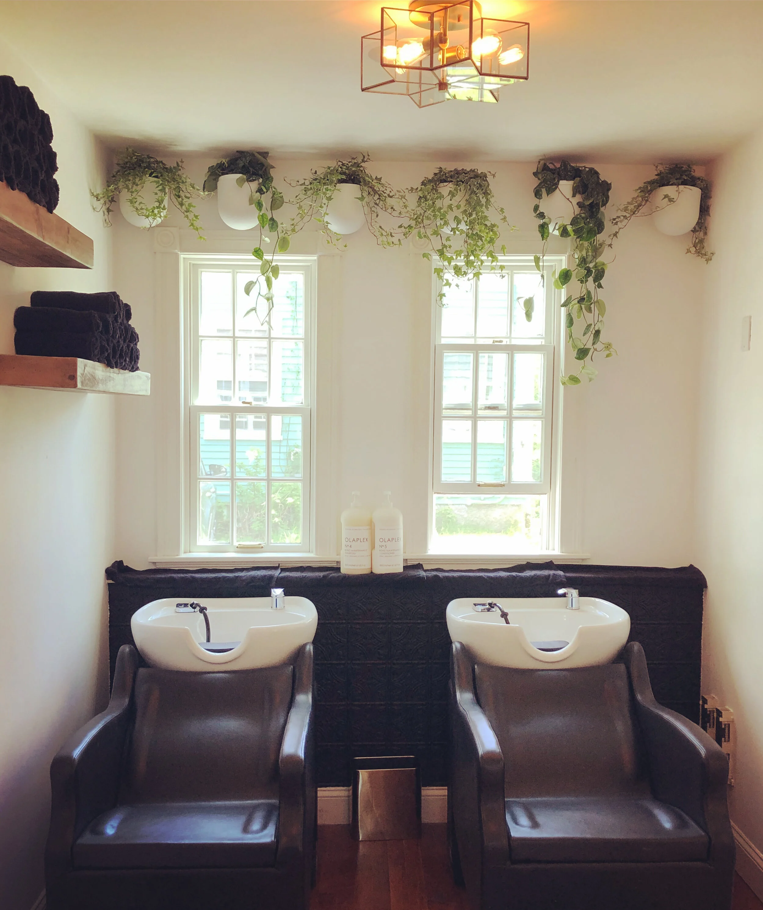 the shop is a boutique salon specializing in high-quality hair coloring, bayalage, cutting, smoothing treatments, blow-drys, and special occasion styling.